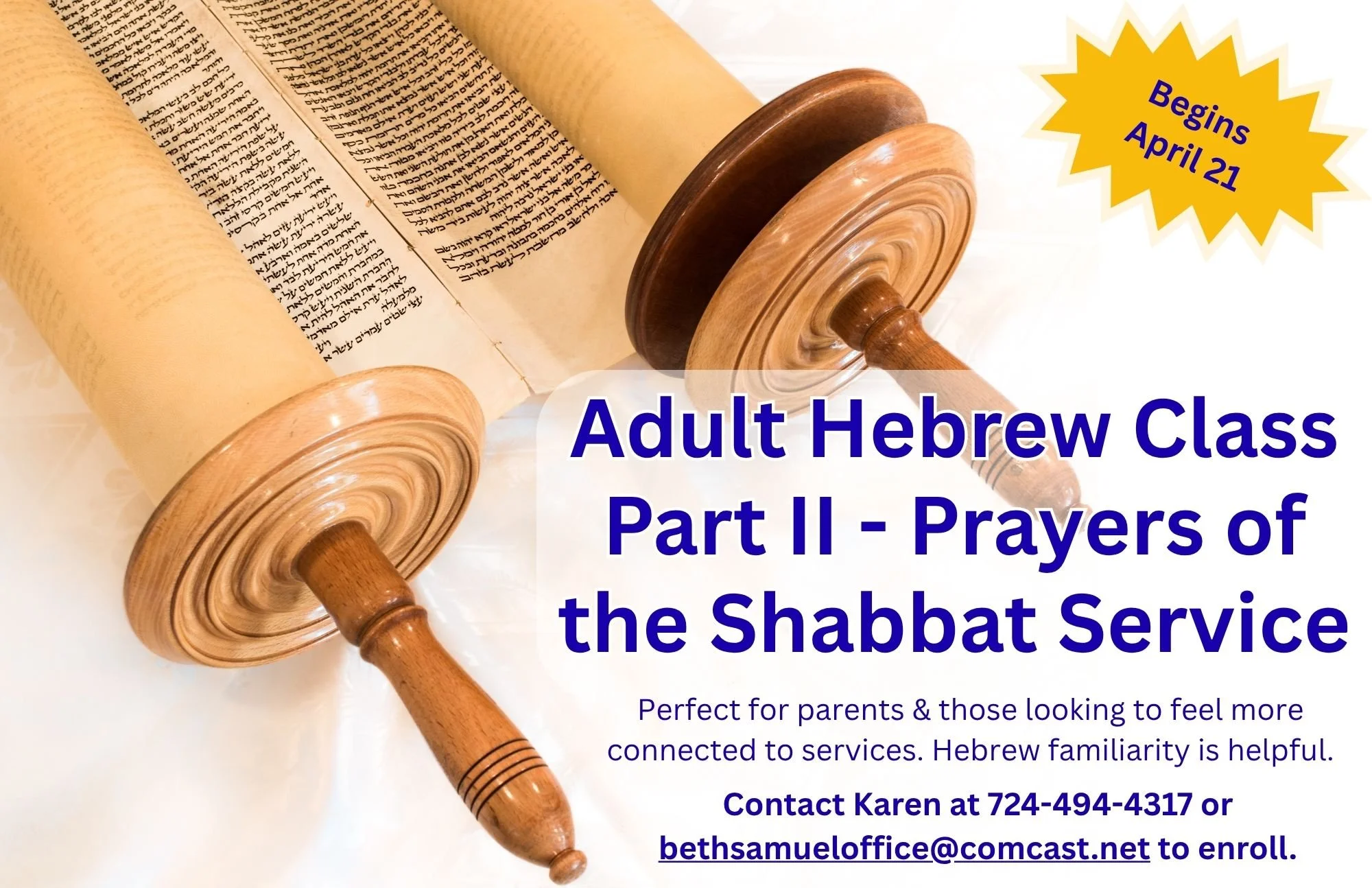 Ongoing Program: Adult Hebrew Class - Part 2 begins April 21, 2026